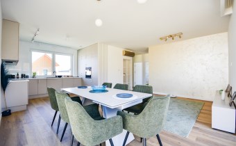 Dom zaprojektowany z myślą o rodzinie 2+2 - wyraźny podział na strefę dzienną i prywatną: