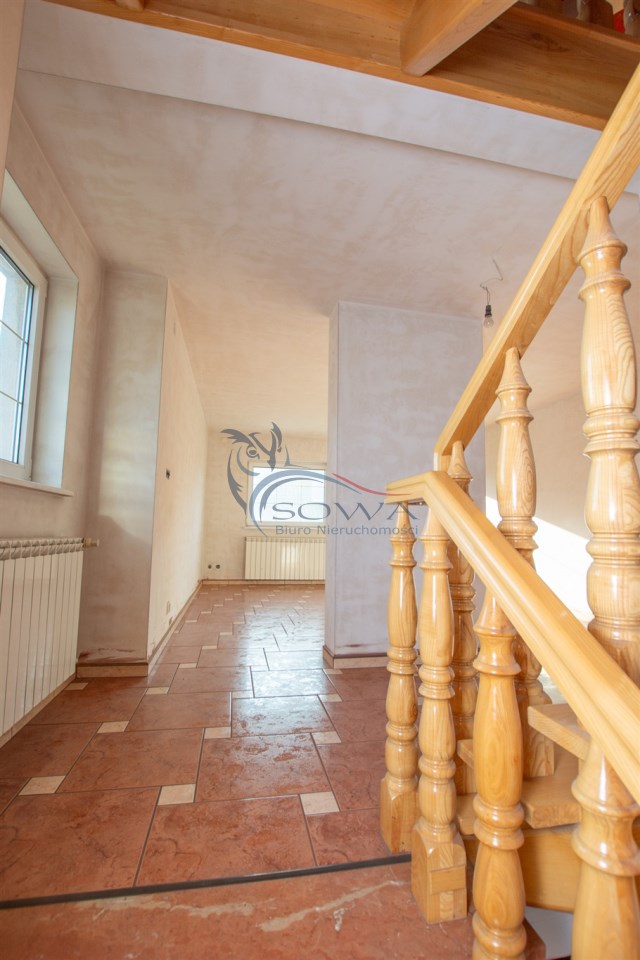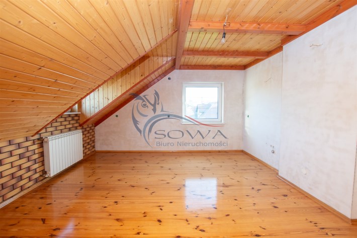 Budynek jest wykończony, sprzedawany bez umeblowania. Gotowy do zamieszkania po odświeżeniu (malowanie i umeblowanie). Jedna z łazienek na poddaszu pozostaje do wykończenia.