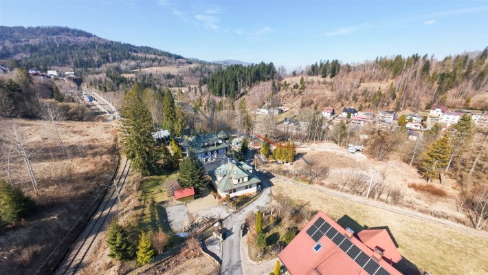 Dodatkową informacją jest fakt, że tory kolejowe biegnące wzdłuż nieruchomości kończą się na wysokości działki i pełnią funkcję bocznicy technicznej, co oznacza brak intensywnego ruchu kolejowego. Jednocześnie w niedalekiej odległości znajduje się ostatnia stacja PKP Wisła Głębce, dzięki czemu obiekt cieszy się dużym zainteresowaniem wśród turystów podróżujących koleją i chcących uniknąć sezonowych korków w Wiśle.