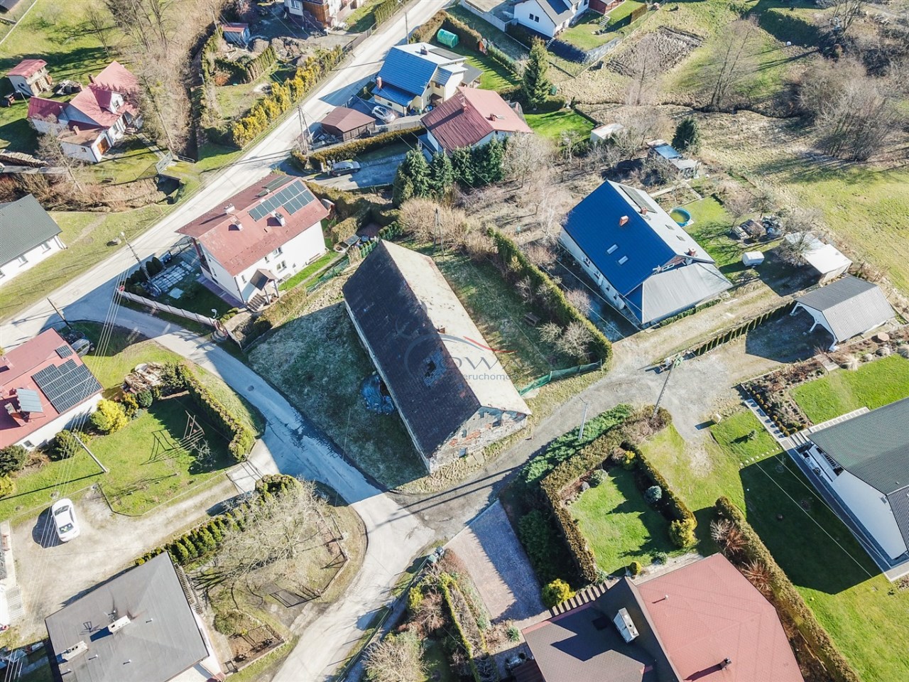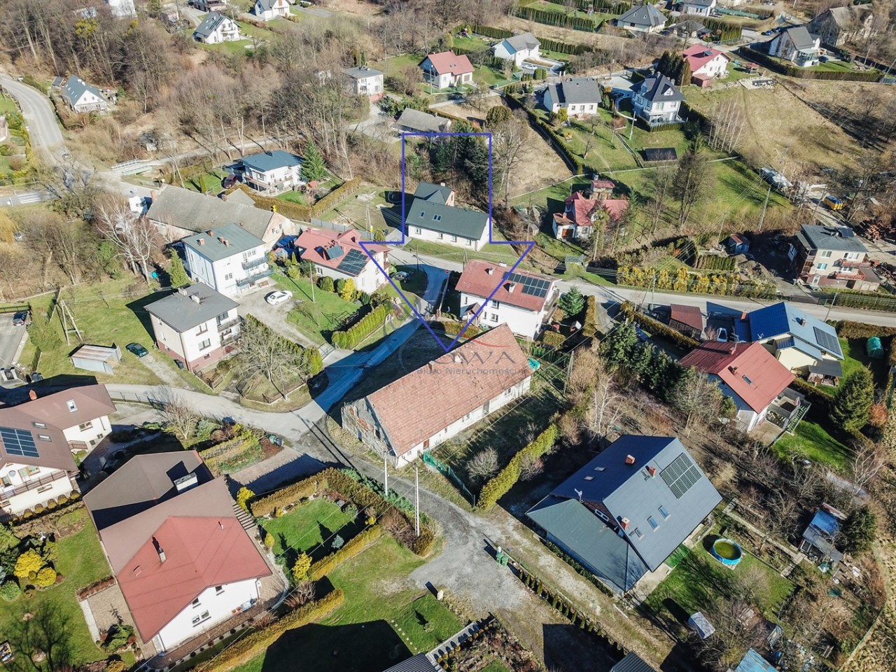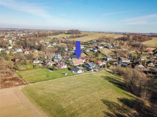 Dom położony w otoczeniu zabudowań jednorodzinnych.