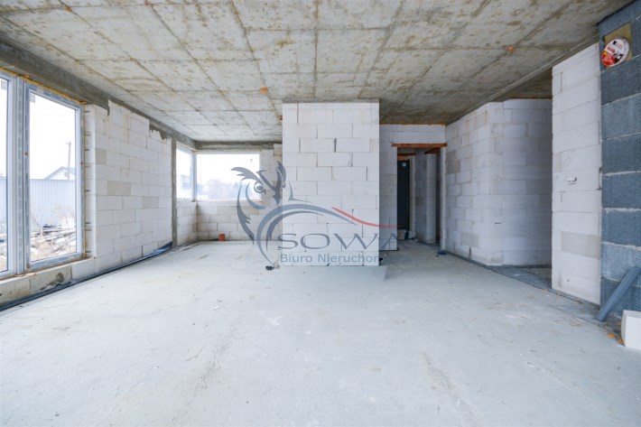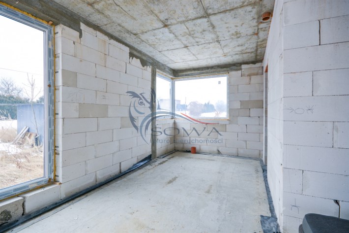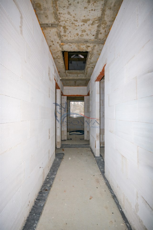 Budynek wybudowany w technologii tradycyjnej z bloczka ytong. Położony w dobrze skomunikowanym miejscu, z pięknymi widokami, w pobliżu zabudowa jednorodzinna.