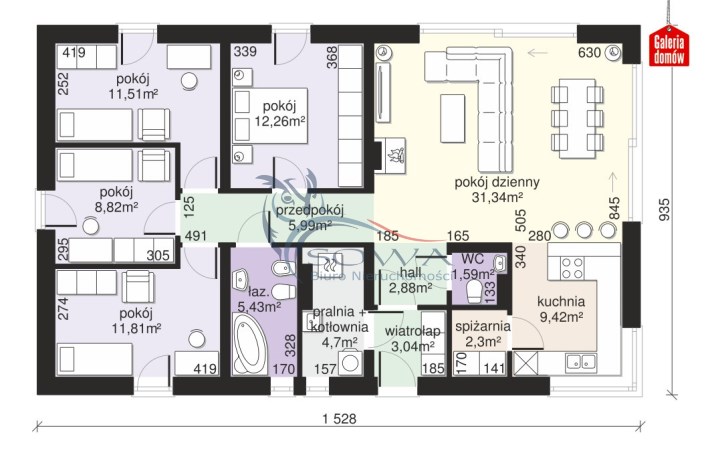 Dom o funkcjonalnym rozkładzie pomieszczeń, w skład którego wchodzą: