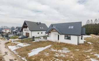 Na sprzedaż nowoczesny, energooszczędny dom w stanie deweloperskim, położony w spokojnym sąsiedztwie domów jednorodzinnych, z szybkim dojazdem do centrum Bielska-Białej (6,5 km).
