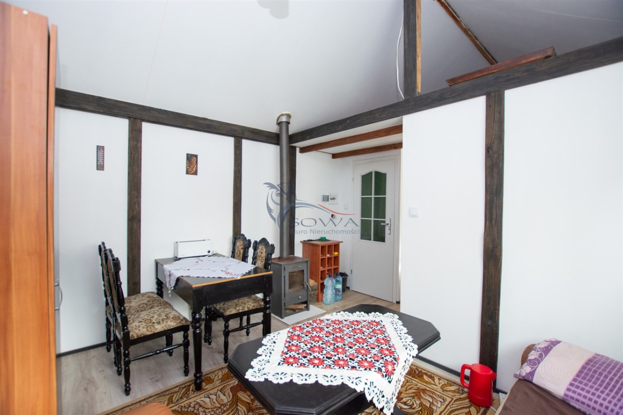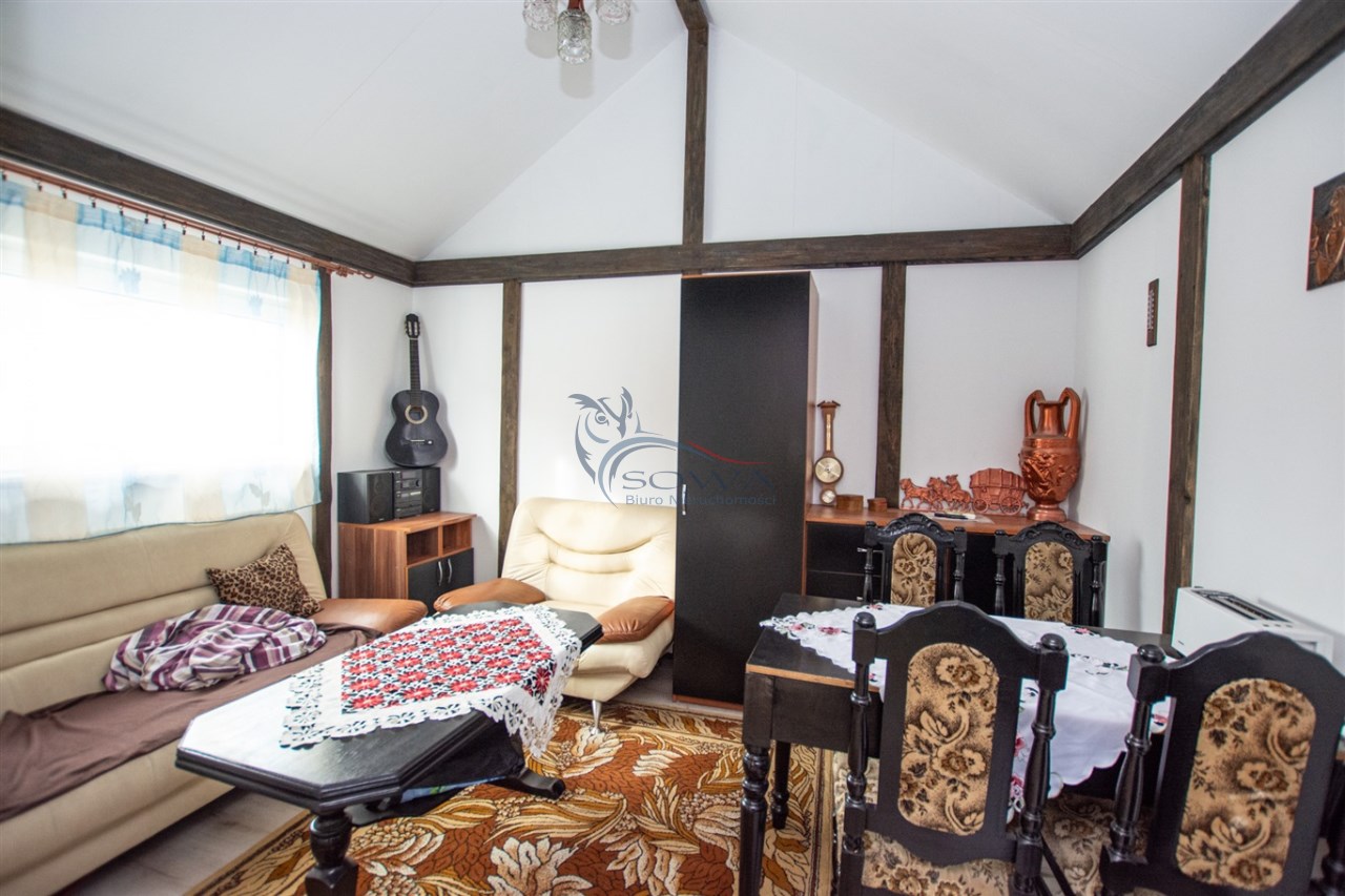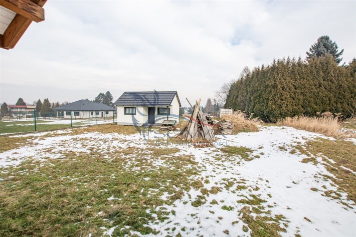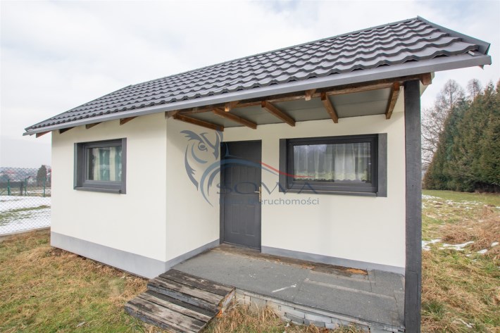 Na działce znajduje się również w pełni urządzony domek ogrodowy o powierzchni 24 m², który może pełnić funkcję domu gościnnego, biura, pracowni lub niezależnej przestrzeni do pracy i wypoczynku.