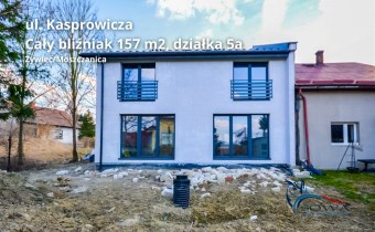 Łączna powierzchnia użytkowa budynku wynosi 157,06 m², natomiast powierzchnia całkowita to 208,61 m². Nieruchomość usytuowana jest na działce o powierzchni około 5 arów. Dodatkowym atutem są 4 zewnętrzne miejsca postojowe.