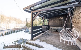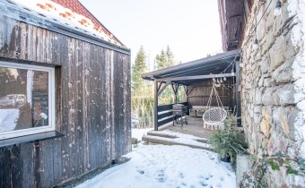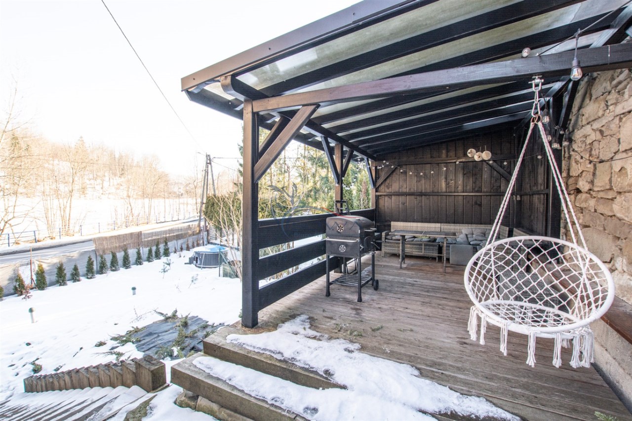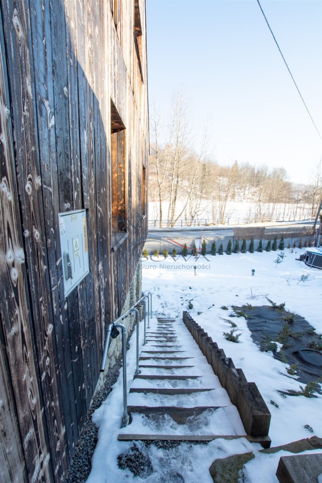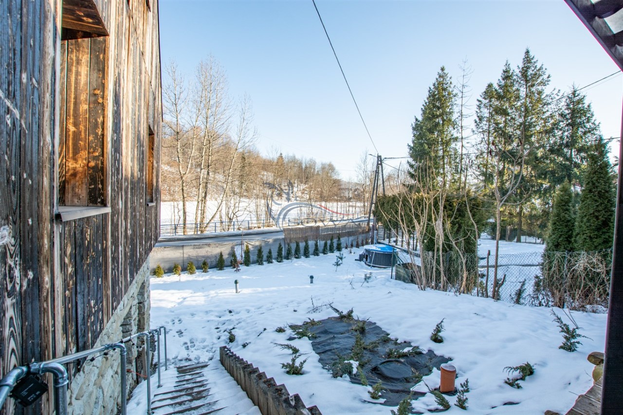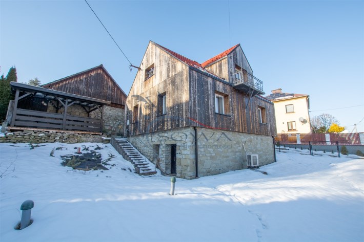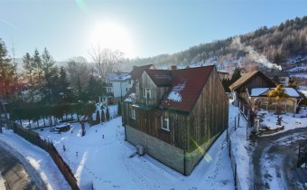 Dom jest murowany, ocieplony wełną mineralną i wykończony paloną deską, co nadaje mu charakterystyczny, górski styl. Odnowiona elewacja oraz starannie wykonane detale sprawiają, że nieruchomość prezentuje się spójnie i estetycznie.