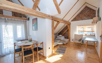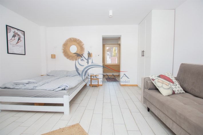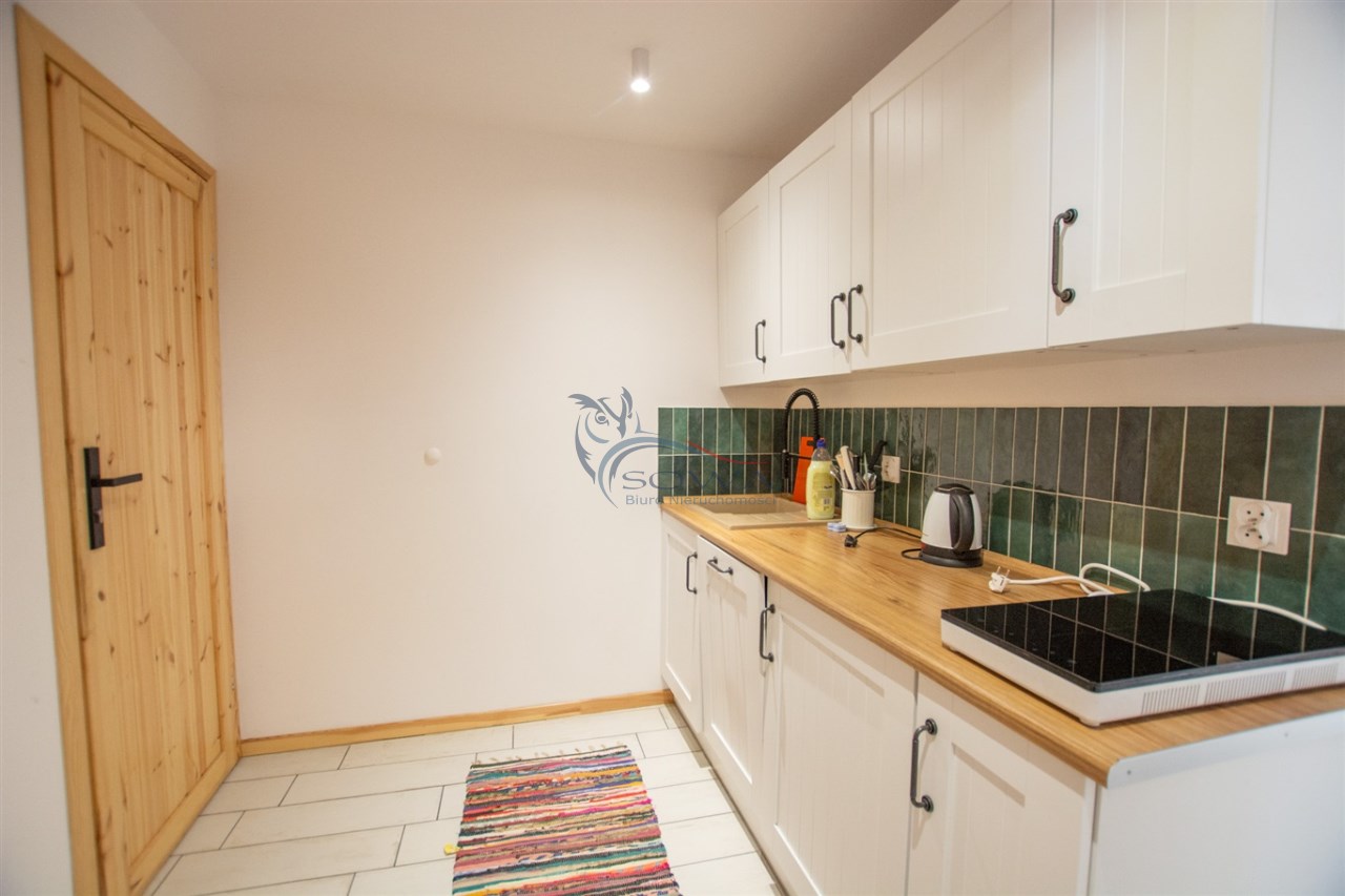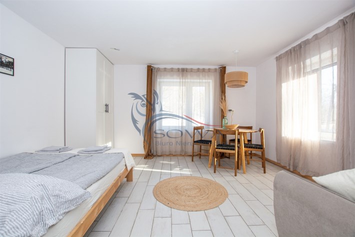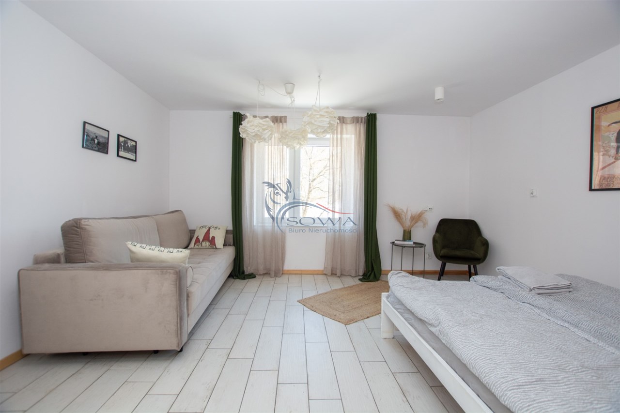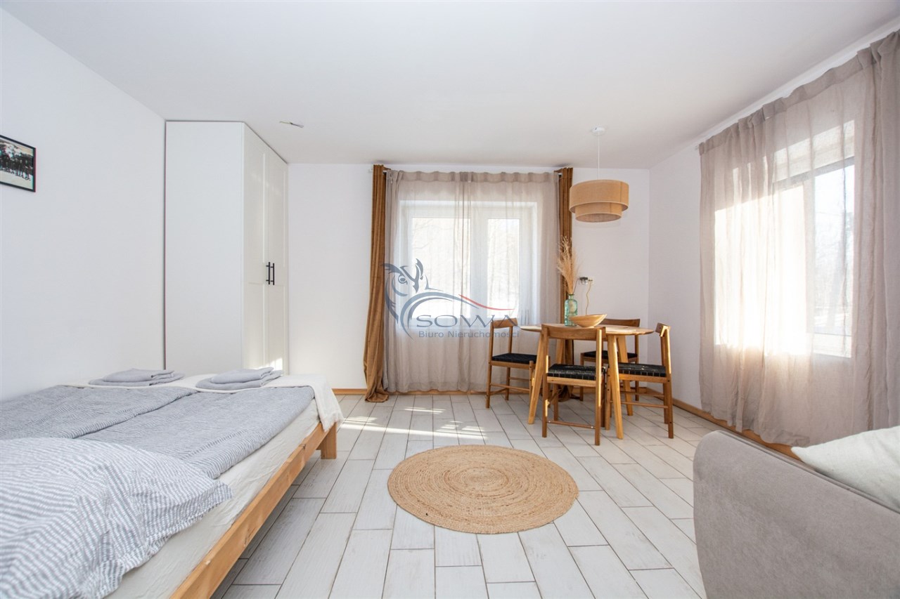 Budynek przeszedł generalny remont i został podzielony na trzy niezależne apartamenty, każdy z osobnym wejściem i zapleczem. Dzięki takiemu rozwiązaniu możliwe jest jednoczesne korzystanie z domu na własne potrzeby oraz czerpanie dochodu z wynajmu. Obiekt aktualnie bardzo dobrze funkcjonuje na rynku najmu krótkoterminowego.