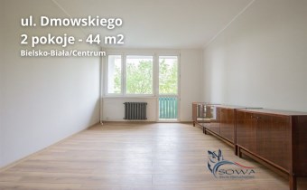 Na sprzedaż mieszkanie o powierzchni 43,73 m², położone na pierwszym piętrze dziesięciopiętrowego bloku z windą, w centrum Bielska-Białej przy ul. Dmowskiego .