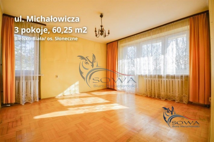 Na sprzedaż przestronne mieszkanie o powierzchni 60,25 m², zlokalizowane w ścisłym centrum Bielska-Białej, przy ul. Michałowicza. Nieruchomość znajduje się na 3. piętrze w zadbanym, czteropiętrowym budynku z cegły.
