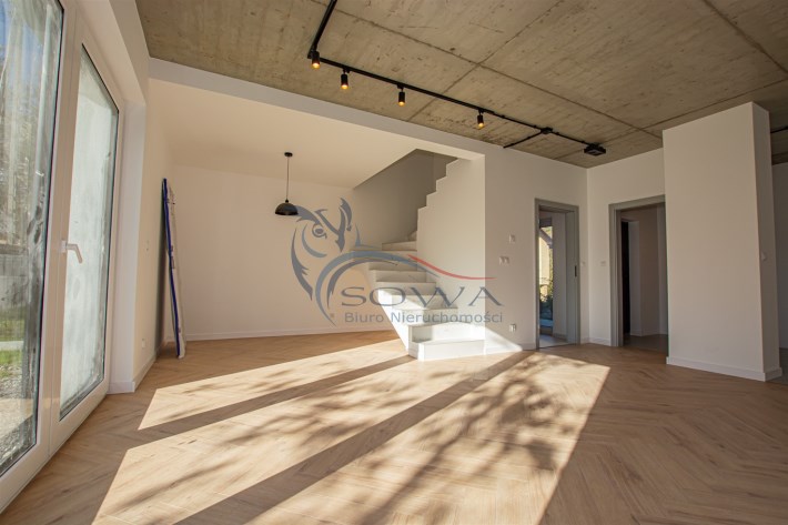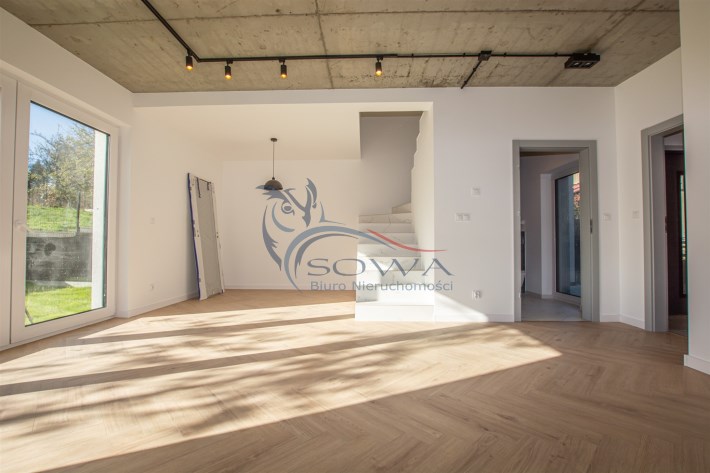 Budynek wykonany z wysokiej jakości materiałów, nowoczesna architektura, funkcjonalny rozkład pomieszczeń, garderoba oraz przestrzeń idealna dla rodziny.