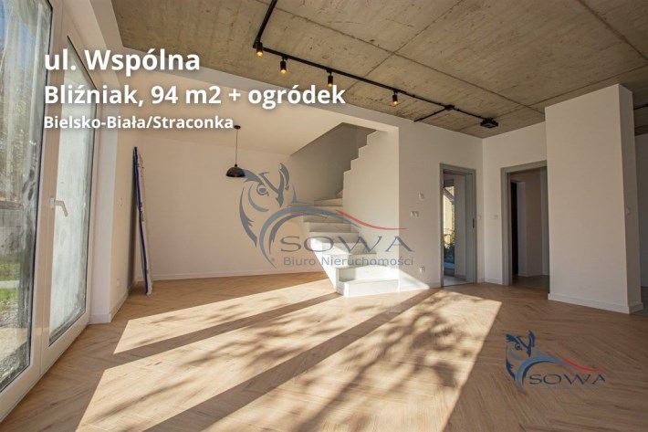 Na sprzedaż nowoczesny, 2-poziomowy segment bliźniaka o powierzchni ok. 94 m² z prywatnym ogródkiem (ok. 100 m²), położony w spokojnej i zielonej okolicy na pograniczu Straconki i os. Langiewicza – tylko 600 m od basenu Aqua.