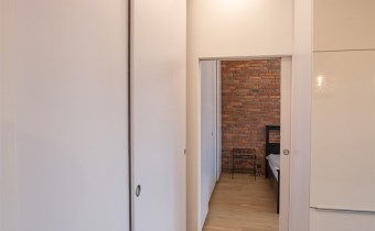 sypialnia z wyjściem na balkon oraz zabudowanymi szafami,